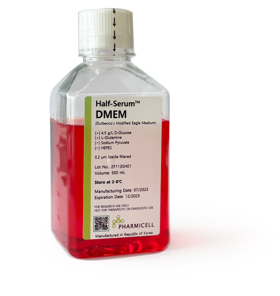 세포 배양에 필수요소인 FBS을 절반만 넣어도 세포의 성장과 기능이 유지되도록 파미셀에서 독자적으로 연구개발한 세포배양배지(Basal medium) 입니다.