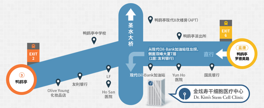 现代Oil-Bank加油站侧面双峰大厦7层(1层友利银行)有金炫寿干细胞医疗中心。