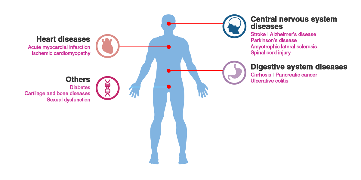 • We have the world’s first stem cell therapy and clinical test experiences treating a variety of diseases with it.